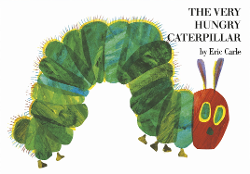 As a high-powered art director, Eric did indeed get his wish for security, but commercial work came to seem less and less artistically rewarding. Then, in his late thirties, a chance encounter with the writer Bill Martin Jr pointed him in a different direction. Not too long after that, Eric was searching at his drawing table for a novel way to alter some blank sheets of paper and reached for a hole puncher. The experiment was enough to suggest an amusing tale about a worm worming its way from page to page in a book. Eric called the story “A Week with Willi Worm” and prepared a dummy for Ann Beneduce, then editor in chief of children’s books at World Publishing. Soft-spoken but decisive, Beneduce suggested that readers might have a hard time loving a worm and asked, “How about, say, a caterpillar?” To which Eric replied, “A butterfly!” As the old saying goes, “Well begun is half done” — and with that, The Very Hungry Caterpillar was on its way.