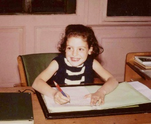 The author as a child at her father's desk. Photo: Maurice Kantorovitz.
