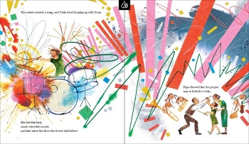 Dean Robbins: Smith is a folk hero in Wisconsin where I live. A museum near her small hometown showcases photos and memorabilia, and she’s remembered for performing at vaudeville theaters around the state as an accomplished teenage drummer. But it wasn’t until I learned about Viola’s national significance that I had the idea of writing a picture-book biography. When she reached adulthood in the 1930s, women instrumentalists were viewed as inferior to men, and playing the drums was considered particularly “unladylike.” Against all odds, Smith boldly asserted herself in the male-dominated music industry, starting her own jazz orchestra and gaining fame as “the fastest girl drummer in the world.” Then she took up the cause of helping other women musicians by publishing an influential 1942 article in DownBeat Magazine called “Give Girl Musicians a Break!” From a young age, Smith was determined to pursue her passion, leap over obstacles, and open doors for others. I can’t imagine a more inspiring story for children.