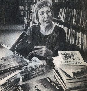 Ginny Moore Kruse in 1980, surrounded by some of the year's Newbery contenders.