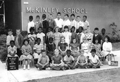 Irene (seated, second from left) and Pam (seated, fifth from left) in third grade. (Photo courtesy of Pam Muñoz Ryan.)