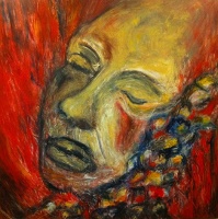 My mother prayed. And she painted. Her body was weak, but until the very end her arms stayed strong enough to lift a paintbrush and scratch at the canvas with her fingers. Her paintings surround me, reminding me of the beautiful turns of her brilliant mind — the dark paintings, the dreaming ones, the ones holding secrets, the bold creations demanding attention and reverence. I am a keeper of my mother’s colors — the red blood, the gray stones, the russet nests, and, always, the turquoise of my abuelita’s room and the sea. I’ve turned away from the Catholicism of my youth and toward my family’s Jewish faith, but I like to think that my mother’s paintings offer me succor and perpetual help. Being able to create within the outsized reality of physical pain has surely been one of the gifts of my life, and I have been given many!