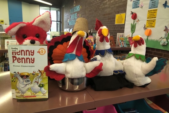 Henny Penny, Cocky Locky, Turkey Lurkey, and Foxy Loxy turned up in my office several months ago. Jane Lindsay, a retired fellow children’s librarian, had spent the winter months sewing puppets for her daughter (also a librarian) and had made a Henny Penny set for my library as well. The puppets were beautiful works of art and a labor of love created during shutdown. They signaled a brighter future when we could all be together again sharing well-known stories with families.