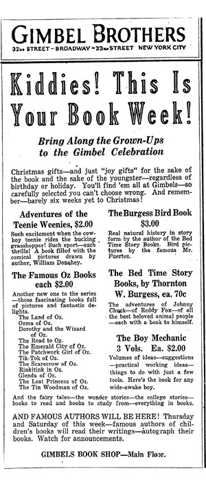 You may also get a kick out of these early ads for Children's Book Week. They came to us courtesy of K. T. Horning, whose article in the July/August 2012 Horn Book Magazine, "The Search for Distinguished," examines the old-as-the-hills arguments about popular vs. distinguished when awards season rolls around.