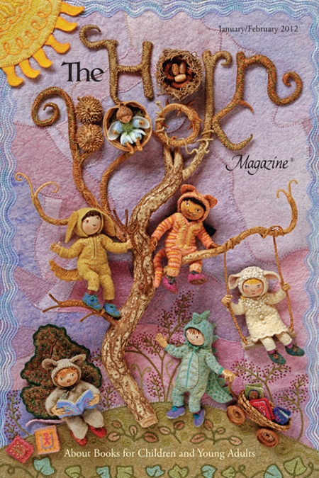Yesterday, a friend posted a link to fabric artist Salley Mavor’s blog where Salley revisits a 2012 post on her process of creating the eye-popping three-dimensional cover art for The Horn Book Magazine’s January/February 2012 issue. Salley’s book Pocketful of Posies: A Treasury of Nursery Rhymes had won the 2011 Boston Globe–Horn Book Award for Picture Book, and her Magazine cover celebrated the Awards and the acceptance speeches published in that issue.