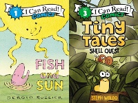 These two entries in the new I Can Read!: Comics series show its audience range. Fish, for younger, almost-independent readers, features an aquatic protagonist with an all-too-familiar problem: “Mom, I’m bored.” Fish leaves the dark, cold depths of the sea and encounters Sun. The two play all day until the sun sets; Fish is disconsolate until discovering that Sun returns the next day — and every day. Uncluttered watercolor illustrations, in Ruzzier’s (Good Boy, rev. 1/19; the Fox + Chick books, rev. 7/18, 7/19, and 5/21) always imaginative, slightly off-kilter style, reinforce the playful action; the natural language and phonetic patterns will serve readers well; and the emotional drama is pitch perfect. Shell, aimed at more experienced readers, features two entertainingly cartoony plump and similar-looking creatures; but while one has a snail’s shell, the protagonist doesn’t. Neither an acorn nor a thimble creates a satisfactory covering, but our hero — eventually realizing it’s a slug — fits in elsewhere, and just by being itself (although still friendly with snails). The story is told in simple sequential panels, and a smart, manageable “slug v. snail” chart is appended. Both books contain useful, identical front matter with examples of differently shaped conversation balloons and a “Quick how-to-read comics guide.” (Fish employs a single large panel per page that contains only simple dialogue balloons and narrative boxes, rendering the explanations somewhat extraneous.) The back covers offer sample panels that preview each book’s content, allowing readers to decide for themselves if they are ready for that format. Two great concepts: I can read and I can choose.