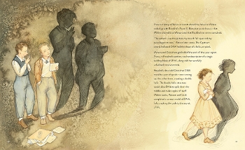 With Tanya’s books, the sheer amount of history and science can be challenging for an artist. And with Rosalind, the science is literally microscopic. I created a paginated dummy breakdown for Gretchen working with the rhythm and pacing of the text and page-turning flow. Gretchen and I then discussed the illustration focus (spreads versus individual pages and spots, and where she would display her beautiful borders) and the overall buildup to the climactic spreads and denouement. Another challenge for Gretchen was to age Rosalind from childhood through adulthood while simultaneously illustrating a story with a lot of different beats and scenes. Gretchen spent a great deal of time working on that age progression, showing the years unfolding in beautiful detail. As the sketches evolved, Tanya had to do additional work to streamline the text yet keep the science accessible, which she managed so effectively. We were tinkering right down to the end of the final layout pass to get the harmony right between text and art. My job as editor and publisher is to make sure all of the parts in this process are working together in perfect step.