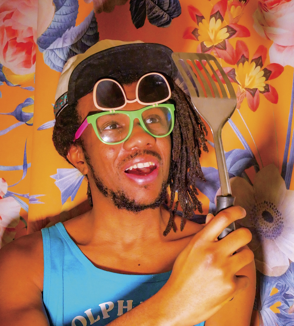 | C. G. poses with his self-portrait. Photo: Danielle Amy. |