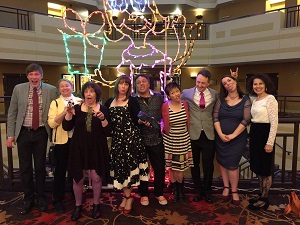 At the opening gala. L-R: Jeff Mack, Diane deGroat, Jane Yolen, Heidi Stemple, Ralph Masiello, Lisa Yee, David Hyde Costello, Megan Dowd Lambert, Lesléa Newman. Photo: Sean P. Lambert St. Marie