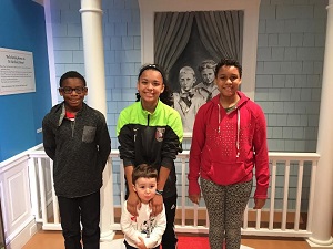 Four of Megan’s children by a display about Geisel’s childhood home. Photo: Megan Dowd Lambert