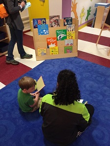 Reading in the Cat’s Corner craft and activity room. Photo: Megan Dowd Lambert