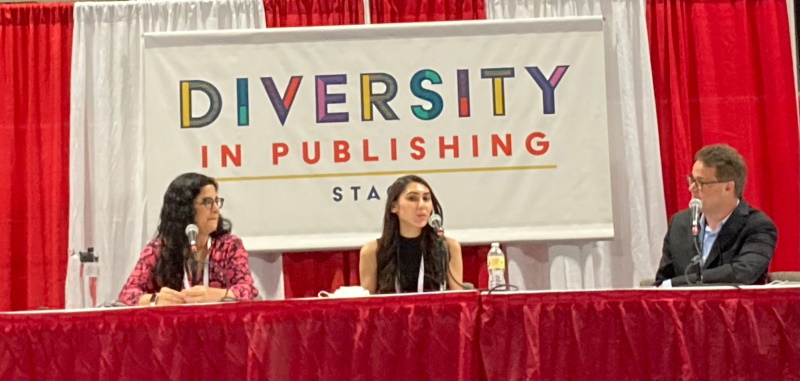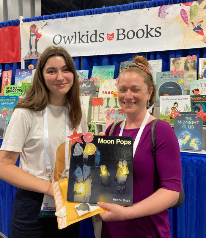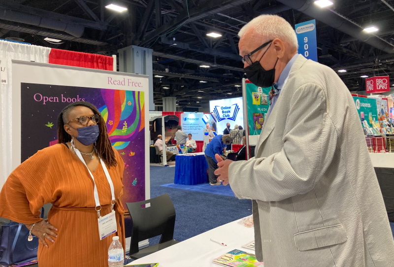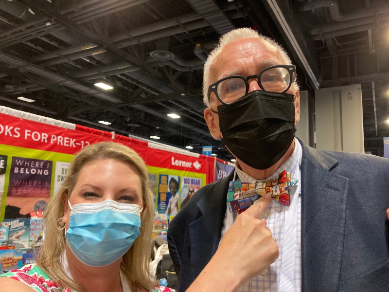 On the exhibit floor, I was able to hand out Boston Globe-Horn Book Award stickers to the 2022 winners and honorees and to congratulate the winning publishers. Though we'd spoken on the phone and emailed, it was wonderful to be face-to-face for the first time since Midwinter 2020.