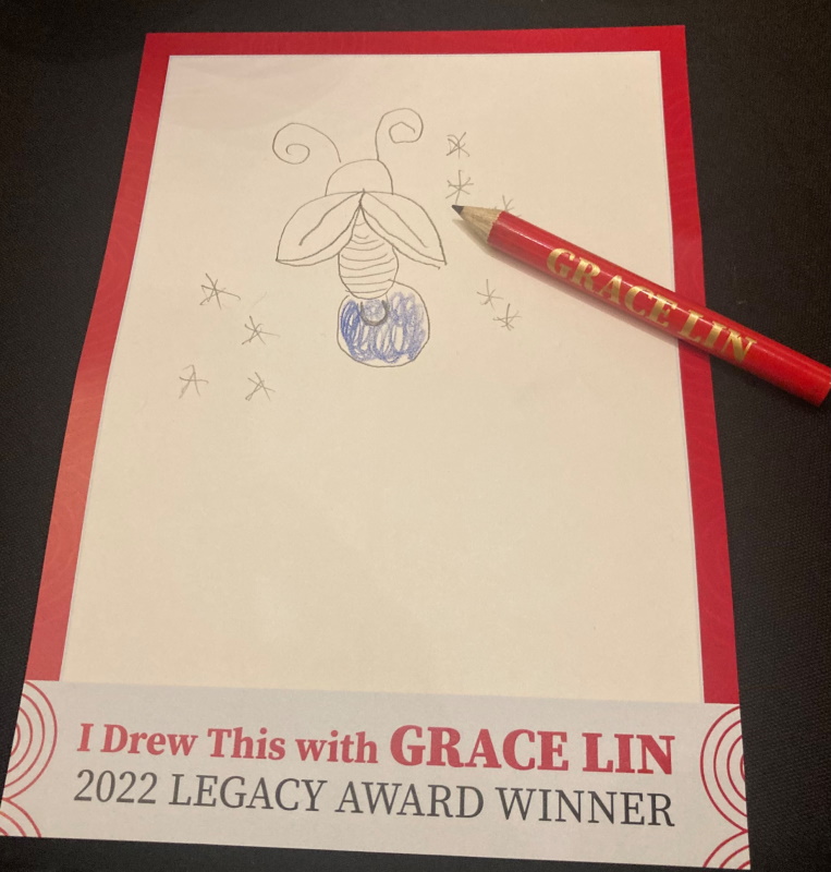 The Newbery-Caldecott-Legacy Banquet was splendid, both on its own as a glam-filled and joyous event and as a much-deserved nod to the previous two years' creators who weren't able to be fêted in person. I sat at one of the two REFORMA tables, the best seat in the house in a historic year of the first Newbery and Belpré double win. The speeches by Donna Barba Higuera and Jason Chin were emotional and inspirational (and stayed fairly close to what the Horn Book had already printed) and Grace Lin lit up the room -- and instructed us all, step-by-step, how to draw a firefly.