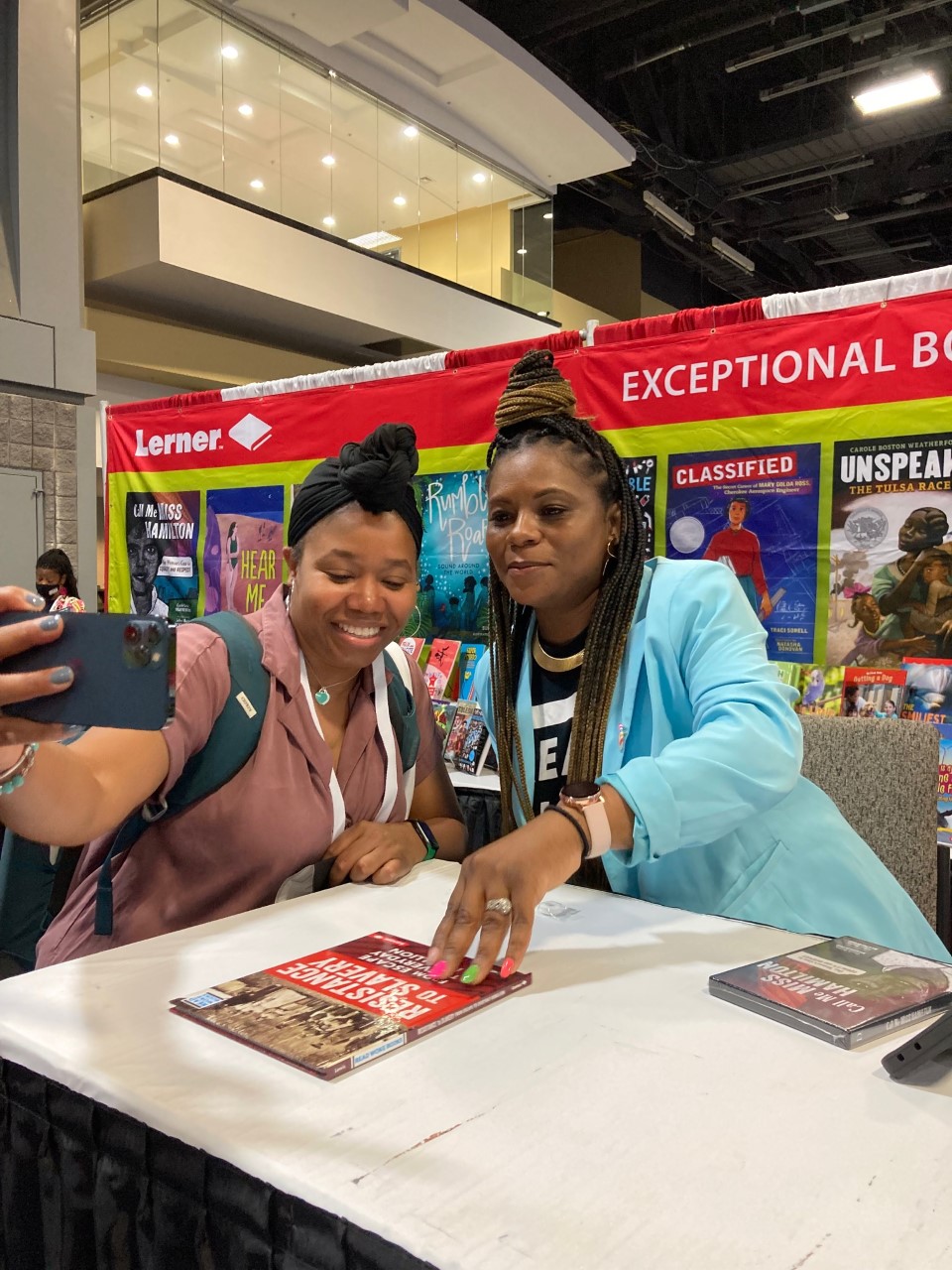 Having breakfast with Patty Rosati, Alessandra Balzer, Christina Carpino, and Justina Ireland was a treat. Justina won the 2022 Scott O’Dell Award for Ophie’s Ghosts, and while the O’Dell family sent Justina her award via mail, the award committee, in the form of me, was glad to be able to congratulate the winner in person. (I think I might have convinced her to write something for the Horn Book, too.)