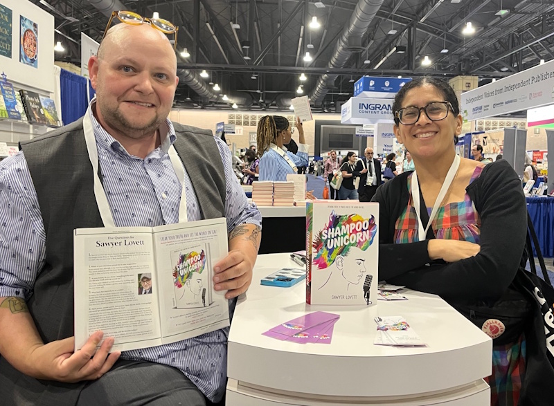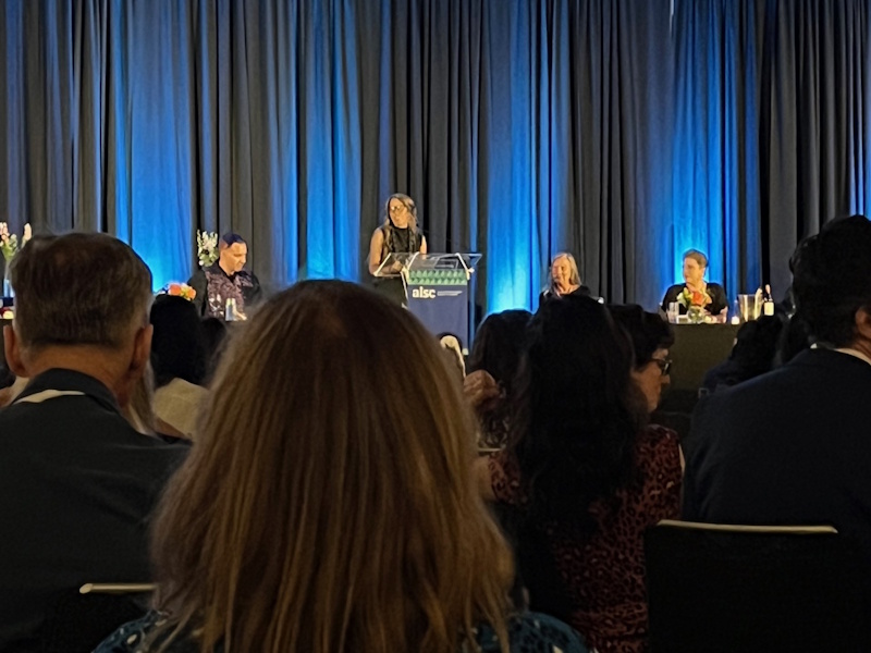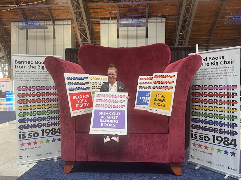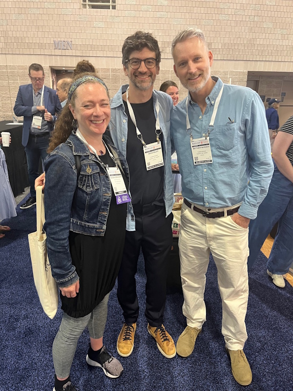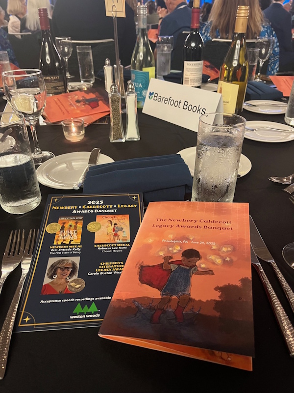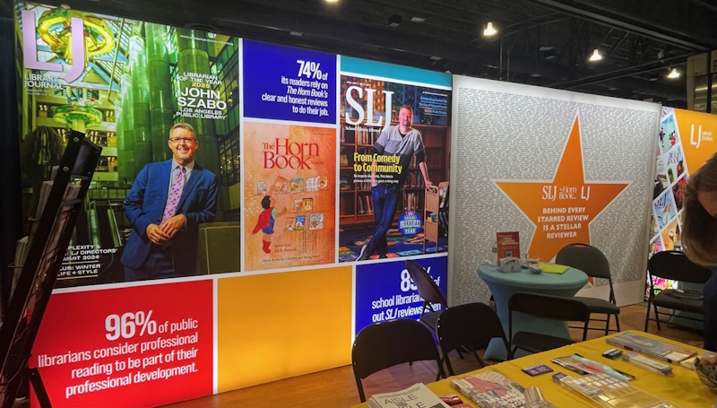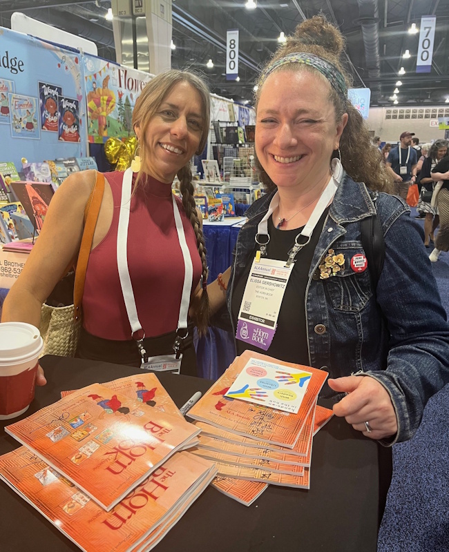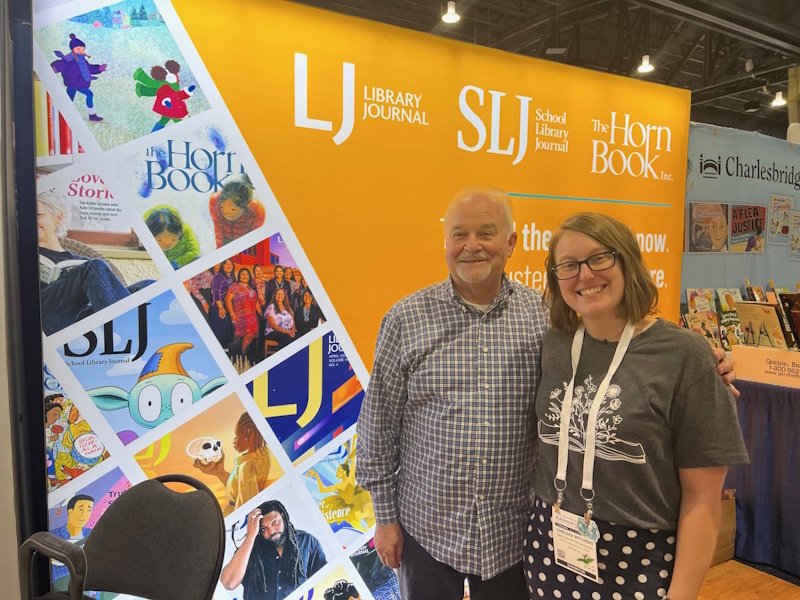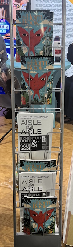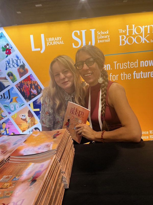 In addition, the ALSC/YALSA reunification proposal was approved by ALA Council. Friend of the Horn Book Dr. Claudette McLinn was installed as ALSC’s president, Maria McCauley, director of Cambridge (MA) Public Library (my home system), is 2025-2026 president-elect of ALA. I had a great time handing out BGHB Award stickers to winning publishers — and crossing paths with this year’s awards chair Susannah Richards — while spending lots of quality time in publishers’ booths (and with our ad sales manager Al Berman, and at our own gorgeous Booth 705, shared with sibling publications LJ and SLJ and right across the way from JLG) actually seeing, physically paging through, and thoroughly enjoying recent and upcoming book offerings. A lunchtime roundtable with my MSI colleagues Shelley Diaz (from SLJ) and Liz Duffy (from JLG) was another highlight.
