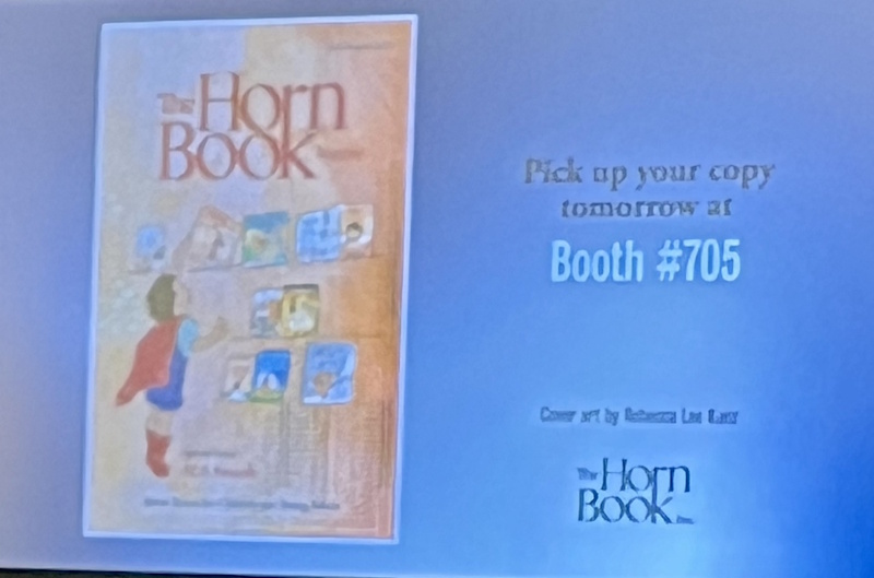 And Monday morning — the best! — our customary giveaway of NEW July/August Horn Book Magazine issues, including Newbery, Caldecott, Legacy, and CSK speeches from the previous day (and more; look here) went off without a hitch and WITH a special surprise: this year’s Caldecott Medalist Rebecca Lee Kunz, who illustrated our July/August cover, signed copies of the magazine for eager fans and colleagues. Thanks again to her publisher, Levine Querido, for making it happen.