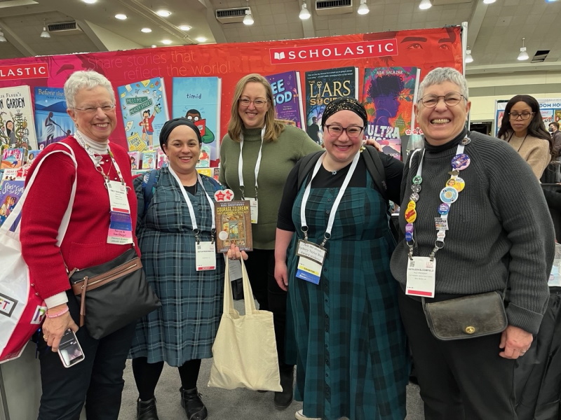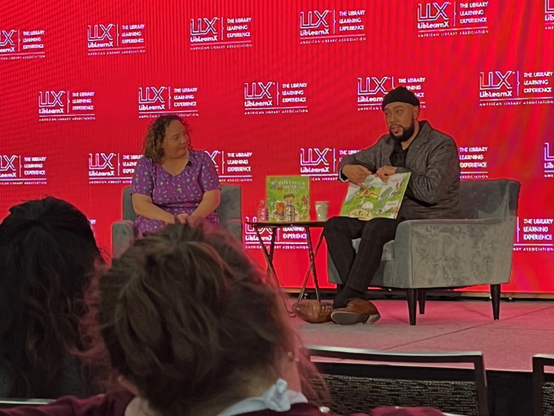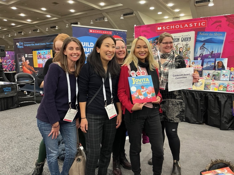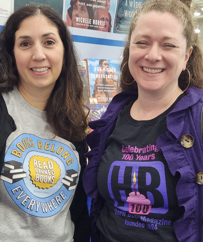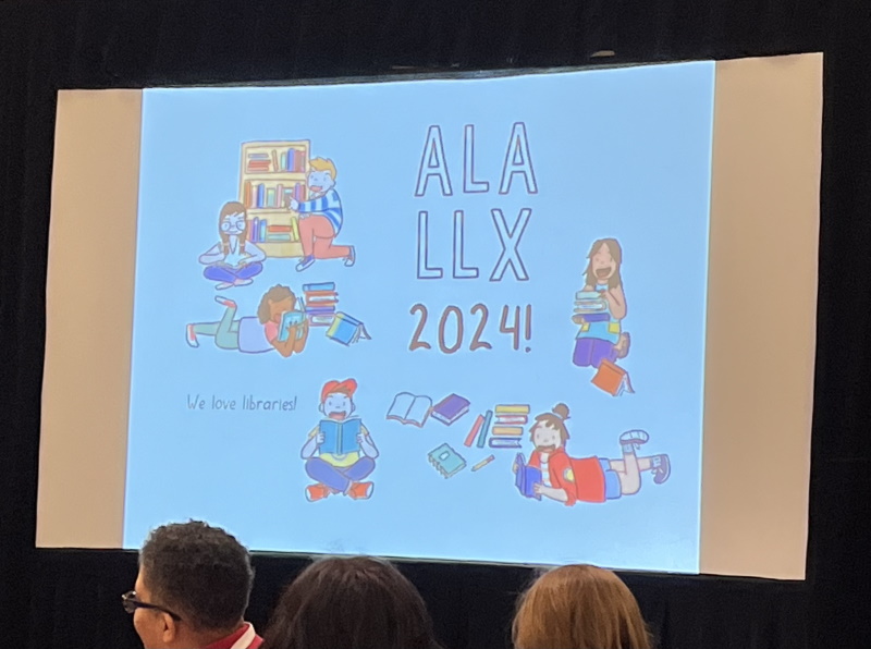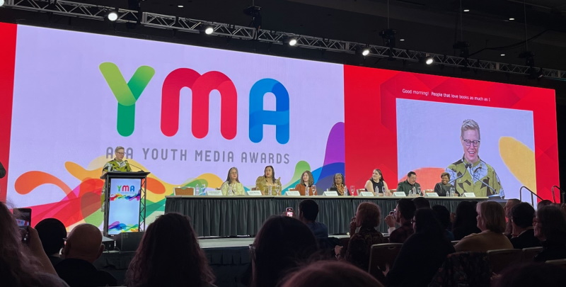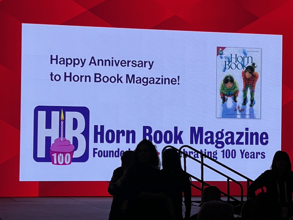What a week for librarians and their friends! The weekend before last, I flew to Baltimore to attend my first ever in-person LibLearnX (my last Midwinter was...the last Midwinter, in January 2020 Philly; remember then?). Yes, it felt different, yes, it seemed smaller...but there was some BIG news at the Youth Media Awards that felt like old times, excitement-wise; and it really was a thrill to see the Happy Anniversary, Horn Book! banner in the opening slideshow — all thanks again to ALSC Executive Director Alena Rivers and her team.