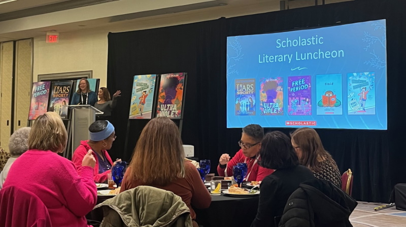 There were great meals and fantastic company — Terry and Lizette, how did I not take any pictures of our dinners?! — fortuitous and planned run-ins (Julie, Erika, Claudette, Susan, Arthur, Nick, Sylvie), informative and entertaining booth visits (Macmillan, Holiday House, Simon & Schuster, Astra, Penguin Random House, Random House, Sourcebooks, Abrams, Scholastic) with Al Berman, excellent stories, wonderful books, thought-provoking discussions, excited conversations...and a big football game right up the road. All in all, a satisfying whirlwind of a visit. See slideshow below.