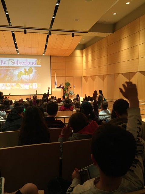 Tui T. Sutherland is the author of, among other books, the mega-popular thirteen-book Wings of Fire series. I am the parent of Tui’s #1 fan, so we had been looking forward to this event for weeks. Tui’s #1 fan had also been counting the days until Tuesday, March 3, when the second book in the Wings of Fire: Legends series was released. My #1 fan received Dragonslayer on Tuesday and stayed up super late reading for a week.