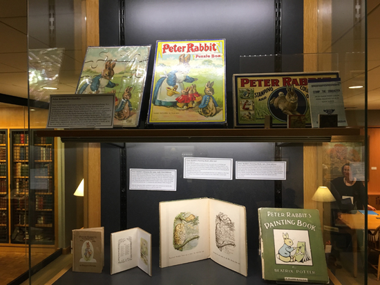A small part of the Shain Library's exhibit on fantasy animals in late Victorian children's literature. The Linda Lear Center is in the background. Photo: Lolly Robinson.