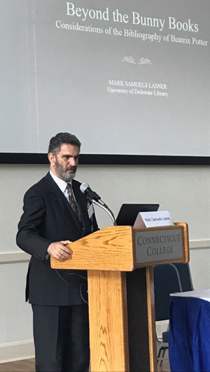 Mark Samuels Lasner talks about archives containing Potter materials. Photo: Marta McDowell.