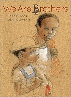 We Are Brothers by Canadian author Yves Nadon and French illustrator Jean Claverie tells a lushly illustrated story of two brothers visiting their family’s summer house in the woods. Every year, the older brother leaps from “the rock” into the water, and this summer it’s the younger brother’s turn. He considers his big brother’s leap a thing of beauty: “He is cat. He is bird. He is fish.” The younger brother carefully climbs to the top of the promontory but then stands there terrified and thinks: “What if I slip? What if I miss? What if I die?” But when he sees his big brother’s expectant gaze, he plucks up the courage to jump: “I am cat…I am bird…I am fish…” a metaphorical transformation reflected in a stunningly evocative illustrative sequence. The 2018 Kirkus review of this book notes: “In choosing to make the protagonists black while never explicitly referring to their race, the author and illustrator enable all young readers to understand and experience the transformative power of nature without resorting to preaching.” Claverie has been criticized for a few somewhat stereotyped images of the boys’ faces, but this is an otherwise splendid picture book, notable for its embrace of wildness.