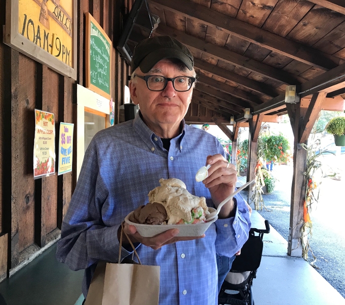 There was also fried (sea)food, a walk in which we said hi to some belligerent-looking goats and iridescent peacocks, and a very large amount of ice cream. Not bad for a day-not-at-the-office.