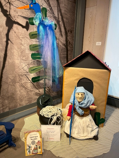 We squinted at tiny tableaus that nestled among the branches or at the base of the tree. A crochet version of eponymous puppy from Hot Dog rested on the tree while a cardboard replica of its bustling city lay below; Luli and her friends from Luli and the Language of Tea gathered in popsicle stick–chairs at a teacup-laden table around the tree’s trunk, underneath tea bag–shaped ornaments labeled with each language’s word for “tea."