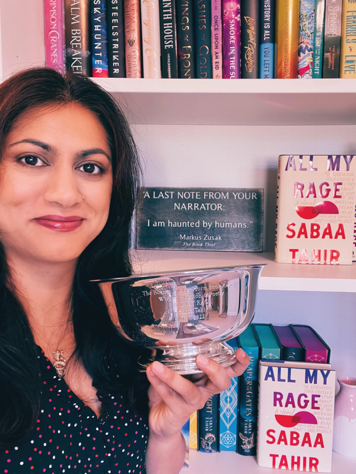 Thank you so much to the Boston Globe–Horn Book Awards committee for seeing this book and this journey and awarding All My Rage the Fiction and Poetry award. I learned I am the first Muslim American and Pakistani American to receive this award in its fifty-five-year history, something that makes me proud and gives me hope for all the young writers out there today working to make a place for their story. A message to them: there is a place for your words. I hope this award is a reminder of that.