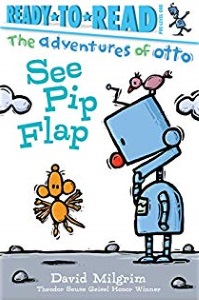 The latest in Milgrim’s early reader series about robot Otto, mouse Pip, and their creature friends begins with an exit: “See Tweet flap. / See Tweet fly. / Fly, Tweet, fly. / Bye, Tweet, bye.” While watching Tweet take off, Pip becomes inspired to try it (“See Pip flap”), but over the course of several pages-turns (and much flapping), the mouse’s feet remain firmly on the ground. Enter Otto, who constructs a remote-control drone. Pip is happy to operate the drone for a while (“Fly, Pip, fly!”), but soon becomes bored (“Ho hum”) and goes back to flapping. Otto has one more clever solution to offer, which allows Pip’s dreams to take flight. Milgrim’s use of extremely limited vocabulary provides effective support to new readers — and the book’s comic timing is spot-on in the repetition and pacing. So, too, in the clean illustrations, where all that flapping is both understated and hilarious and where the warmth of Otto’s heart — metal though it may be — is apparent in the robot’s ginormous smile. ELISSA GERSHOWITZ