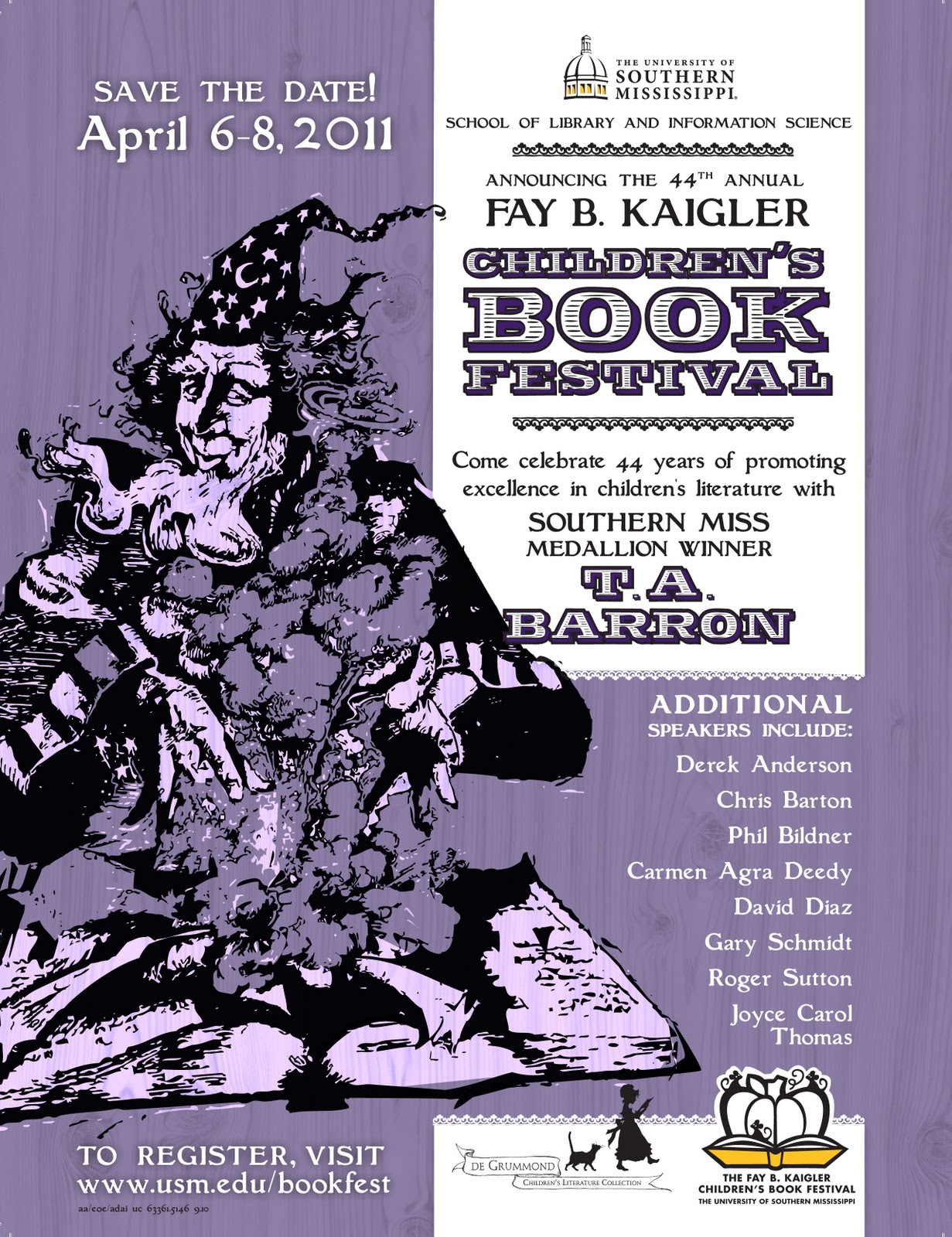 Next Tuesday through Friday I'll be down at the University of Southern Mississippi's Fay B. Kaigler Children's Book Festival, delivering the Ezra Jack Keats Lecture on Thursday. Hope to see some of you there. I last spoke there in 1998 and have gone to the Guide to find some very interesting differences in what publishing looked like then and what it looks like now. Short version: boy wizard.