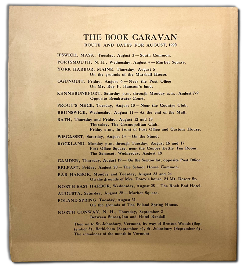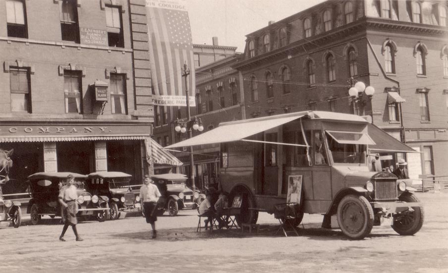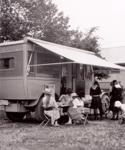 In the summers of 1920 and 1921, Bertha Mahony had a truck outfitted to sell books and trained two booksellers from her Bookshop for Boys and Girls to drive and maintain it. Though the Book Caravan was a commercial flop, it got plenty of attention in its day, including featured stories by all the movie reel companies. In the slideshow below you can see images of the caravan and the diary its drivers kept in the summer of 1921. You can read about the caravan in detail in Barbara Bader's 1999 Horn Book Magazine article, "Treasure Island by the Roadside."