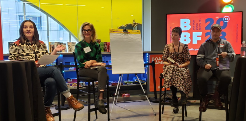 I started my day at "If Not Now, When?," a wonderfully thoughtful and well-attended panel of Jewish authors. It was great to hear moderator Rebecca Podos and panelists Elana K. Arnold, R.M. Romero, and Aden Polydoros (who was equally thoughtful on the panel I moderated last week) discuss everything from their research processes to their personal experiences to the importance of active Jewish characters. I’d served on the BBF’s YA programming committee (a super-smart group!), so it was extra-special to see an example of our work coming together.