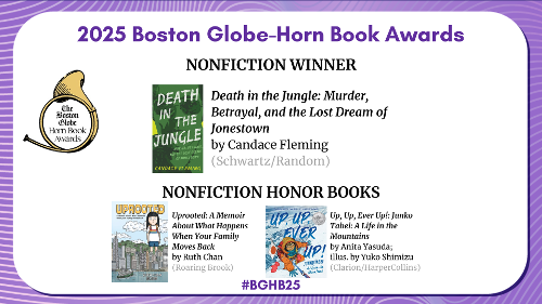 The 2025 Boston Globe–Horn Book Award winners and honors were announced on June 23rd, 2025. For reviews of the other winning titles and more, click on the tag BGHB25.