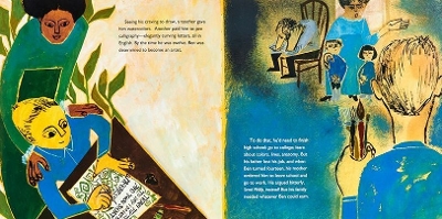 RS: Picture-book biography — there are hundreds now. In the past twenty years, it has become a durable subgenre of both biography and picture book. Picture books about artists are a big part of that. Evan, how do you make pictures about an artist without copying that artist, but at the same time, conveying your own excitement about that artist’s work?