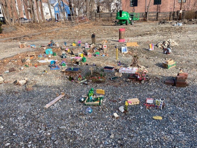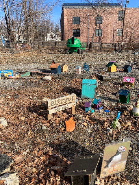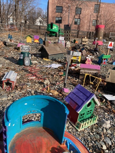 And speaking of elves…during a masked and socially distanced walk/meeting, Elissa and I visited one of the Boston area’s newest attractions: Elfland. Legend has it that Elfland is the creation of an imaginative eight-year-old boy, who says elves “requested that he build them homes” in an empty lot in his Somerville, MA, neighborhood.