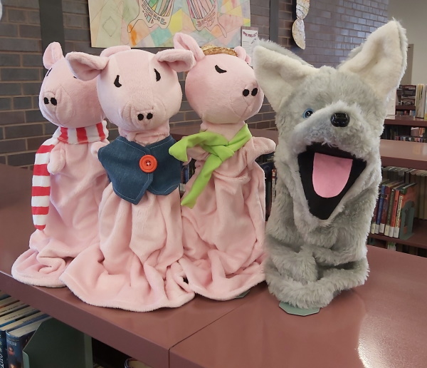 Just as I was finishing up my sewing projects, the Three Little Pigs arrived on my doorstep, along with a whole cast of characters in tow. My colleague had been busy at her sewing machine again, and I had several more puppet-show sets for my library. As I looked over the puppets and put them on my hands, I learned so much about Jane’s creative process. She told me that she had sewn these on the machine her mother bought when they emigrated to Canada years ago. It was the sewing machine from her childhood and she thought fondly about her late mother whenever she used it. Many of the puppets had working mouths, and the red fabric for the inside of the mouths was cut from a dress her mom had sewn for her when Jane was in high school. Like Joseph, she had created something out of nothing, complete with a story to tell.
