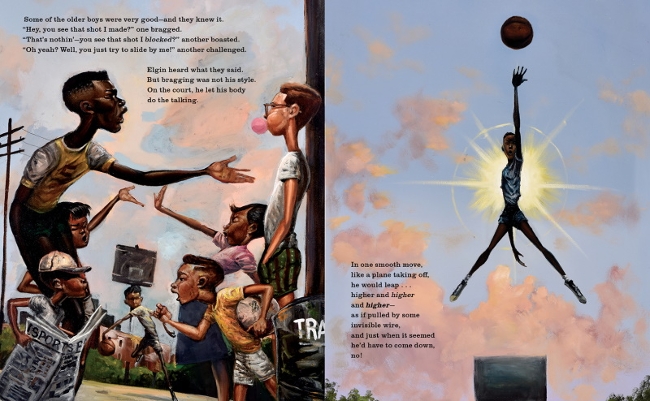 Frank Morrison: One of the wonderful surprises in the picture-book world is discovery. I receive a lot of manuscripts on all sorts of subject matters. Every once in a while I’ll receive one that intrigues me like Above the Rim. The marvelous Mr. Baylor, whom I had no prior knowledge of, had a slamming life story.