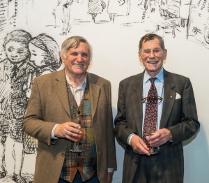 Albert Ullin (right) and author John Marsden at the opening of the exhibition Bunyips and Dragons at the National Gallery of Victoria in 2015