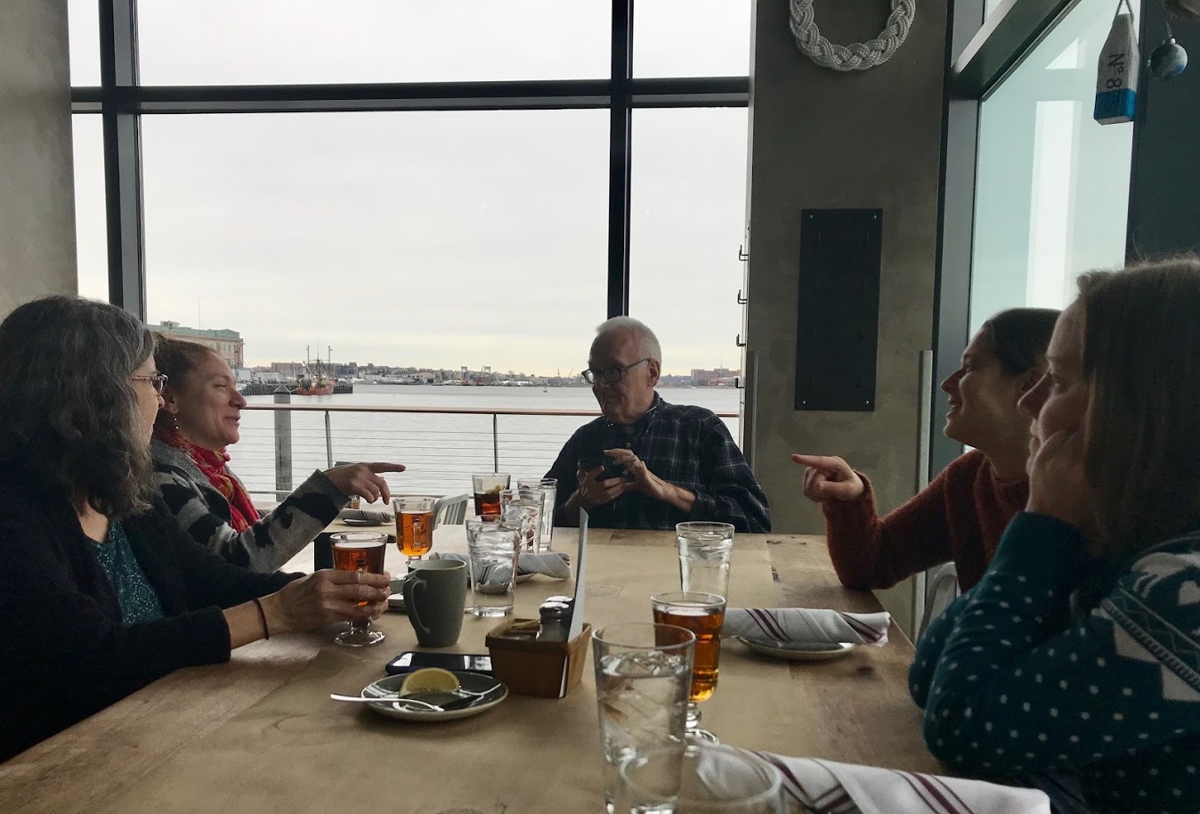 When you have a good cruise director, you get good ocean views. At least, we did on our holiday outing Monday in Boston’s Seaport District, planned by Cruise Director Cindy Ritter. We had a delicious lunch at Legal Sea Foods Harborside. And then it was off to the movies, in a luxurious theater at Showplace ICON. Because sometimes you’ve got to put your feet up and have your seat warmed. The afternoon’s entertainment was Knives Out, which I won’t spoil except to say that it had something for everyone, whether you’re a mystery fan or just want some good jokes and great characters (Roger didn't love it). Office parties, schmoffice parties.
