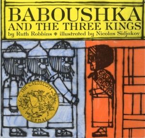 Baboushka and the Three Kings (Parnassus)Illustrated by Nicholas SidjakovMystery and dignity are in the retelling of the old Russian folk tale of Baboushka's meeting with the Three Kings in their search for the Babe of Bethlehem, and her own search for the Child. At the end of the book is the story in verse set to original music. Extraordinary modern drawings, some in rich colors, and a handsome type face which has not been popular for many years combine to make a beautiful picture book.