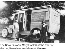 The first year the book caravan operated it made forty-nine scheduled book stops but also just about as many unscheduled stops for flat tires, mechanical catastrophes, and muddy, unpredictable New England roads — the forerunners of today’s highway system. So for the second year, when Bertha wanted technical wisdom as well as book knowledge aboard, Frances Darling — fresh from her course at the Y — slid behind the wheel. She shared the driving with another automotively literate librarian, and while the caravan was still beset with flat tires, the two women changed them with little disruption.