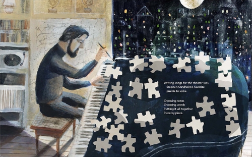 Piece by Piece: How Stephen Sondheim Made Musical Puzzles Come Alive by Erin Frankel; illus. by Stacy Innerst (Calkins/Astra)