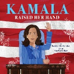 Illustrated by Supriya Kelkar. From the time she was very small, attending marches and protests with her parents, Kamala Harris “learned to raise her hand,” protecting people from bullies, speaking out against injustice, and advocating for the rights and protections of children, families, and vulnerable populations. Using the titular refrain, Mirchandani paints a broad portrait of Harris’s life and accomplishments (“Kamala raised her hand and became the first Black American, first woman, and first South Asian American vice president in American history”), culminating in her historic 2024 run for president. Kelkar’s evocative, textured digitally compiled mixed-media collages include creative use of red, white, and blue and of lotus (the meaning of kamala) motifs. Heartfelt author and illustrator’s notes provide personal connections.