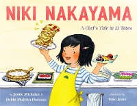 Michalak and Florence dish up a sumptuous celebration of chef Niki Nakayama. Born in Los Angeles to immigrant parents, Nakayama grew up in two cultures. “Outside of Niki’s house was Los Angeles. Inside of her house was Japan.” But Niki’s mother combined the two cultures for family meals, cooking American food with Japanese influences — meatloaf with soy sauce, rice instead of potatoes, and Thanksgiving turkey with teriyaki sauce. Niki wanted to do things her way, too. When young, she would experiment with food, creating such treats as wonton-wrapper pizzas. On a trip to Japan after high school, she learned about kaiseki, a meal of many courses, a “storytelling feast,” which begot the passion on display at her current Los Angeles restaurant, n/naka. In an effective matching of book design and content, Nakayama’s story is dished up like a kaiseki meal: thirteen bites, from her early years in “Bite 1” to a gorgeous dish resembling an abstract painting viewed from above in “Bite 13.” A palette of rich, vivid colors; playful shifts in perspective; and a text emphasizing active verbs highlight the artfulness of Nakayama’s meals and the spirit behind them. Not just about food, but also the importance of gathering, love and laughter, and the can-do spirit of a girl finding her path in life. Back matter includes “Ingredients” (timeline), “Kuyashii” (an explanation of the “Yes I Can” spirit), more information about kaiseki, and the recipe for wonton pizzas.