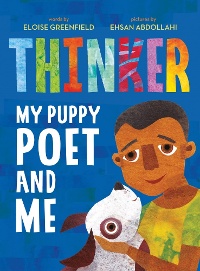 Coretta Scott King–Virginia Hamilton Award recipient Greenfield (Honey, I Love and Other Love Poems; Nathaniel Talking, rev. 9/90; The Great Migration, rev. 1/11) here presents a series of poems, some from new puppy Thinker’s point of view, some from young owner Jace’s. The two philosophize about poetry and life while getting to know each other. Thinker likes to recite poetry aloud, but Jace, a poet himself, worries that Thinker will talk in front of other people. Thinker has to be himself, though, and when Thinker visits Jace’s classroom on Pets’ Day and blurts out a funny poem, Jace is proud of him. “I pat him on the back, / and I say, / ‘You’re cool, Thinker. / Keep on being your / cool self.’” The poems range from free verse, sometimes with well-paced internal rhyme (“fast or slow, high or low / I stop and I go, almost / like singing, making / word-music”), to more structured rhyming poems, culminating in “Thinker’s Rap” (and Greenfield characterizes rap as “real poetry” in her child-friendly author’s note). Abdollahi’s bright collages of handmade and hand-colored paper show Thinker with his joyful, brown-skinned family, in a welcome addition to the too-small canon of lighthearted animal fantasy (and poetry) featuring children of color.