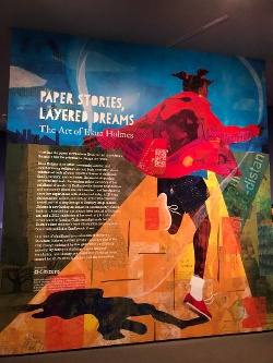 A longtime community-arts leader, mentor, and activist, Holmes worked with teen curators (through the MFA's Curatorial Study Hall program) who wrote insightful text introducing the exhibit and accompanying the picture-book art.