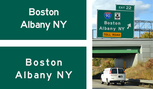 Upper left: normal kerning. Lower left: extra-wide kerning used in highway signs.